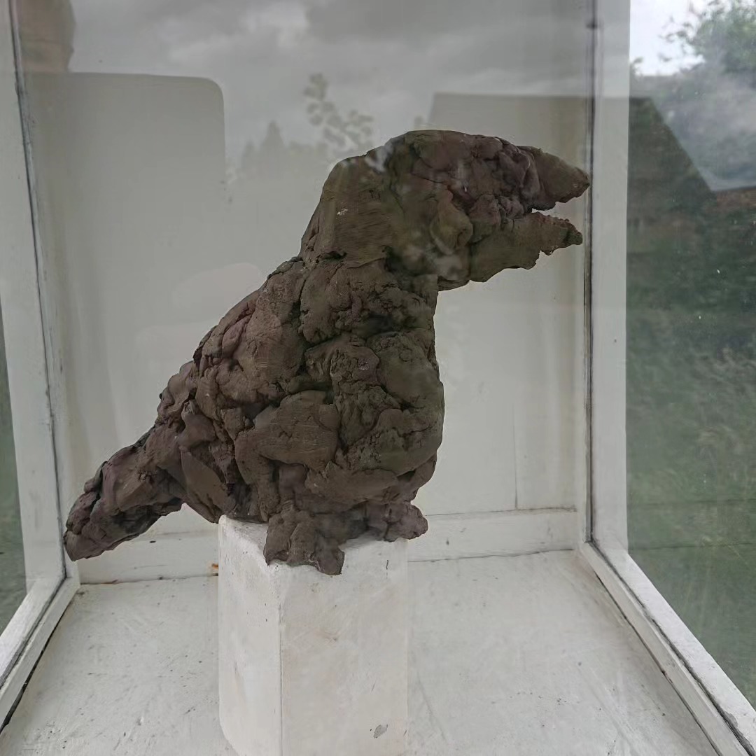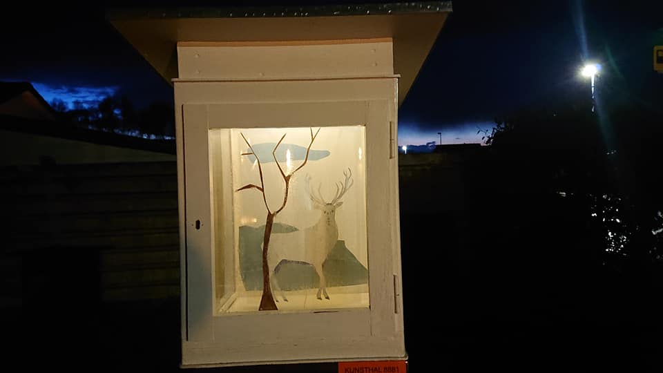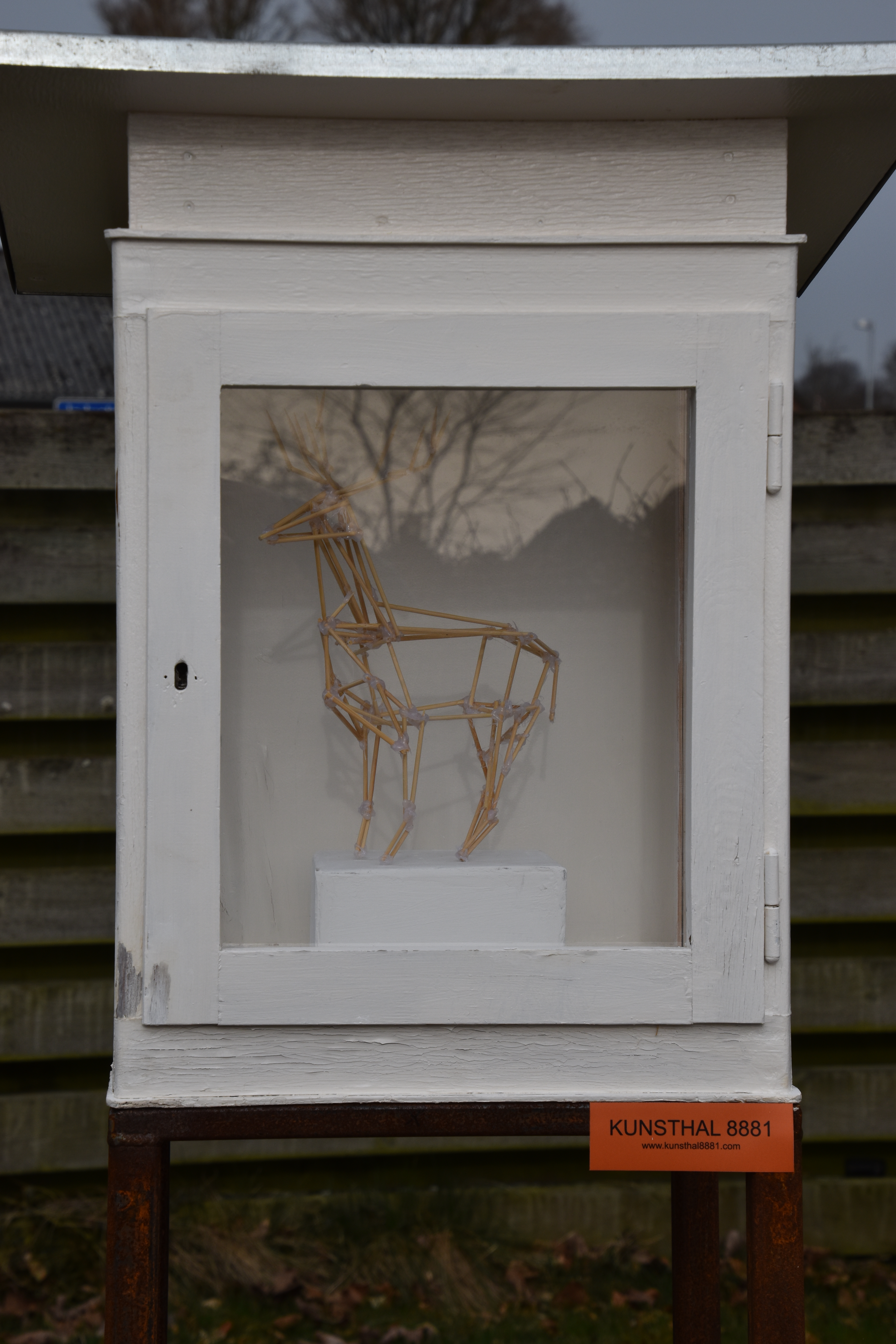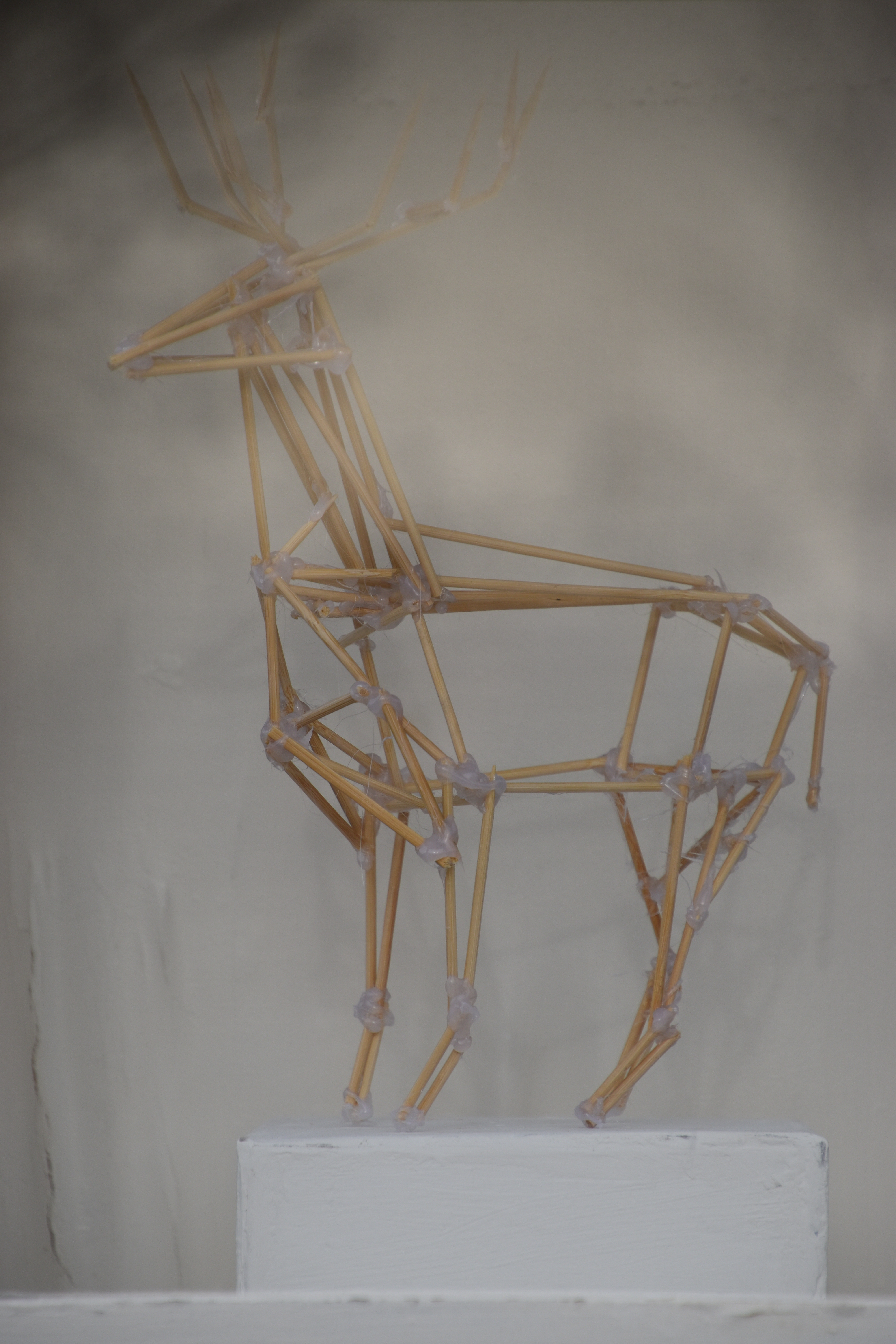 “Kronhjort uden landskab”, pinde og lim.