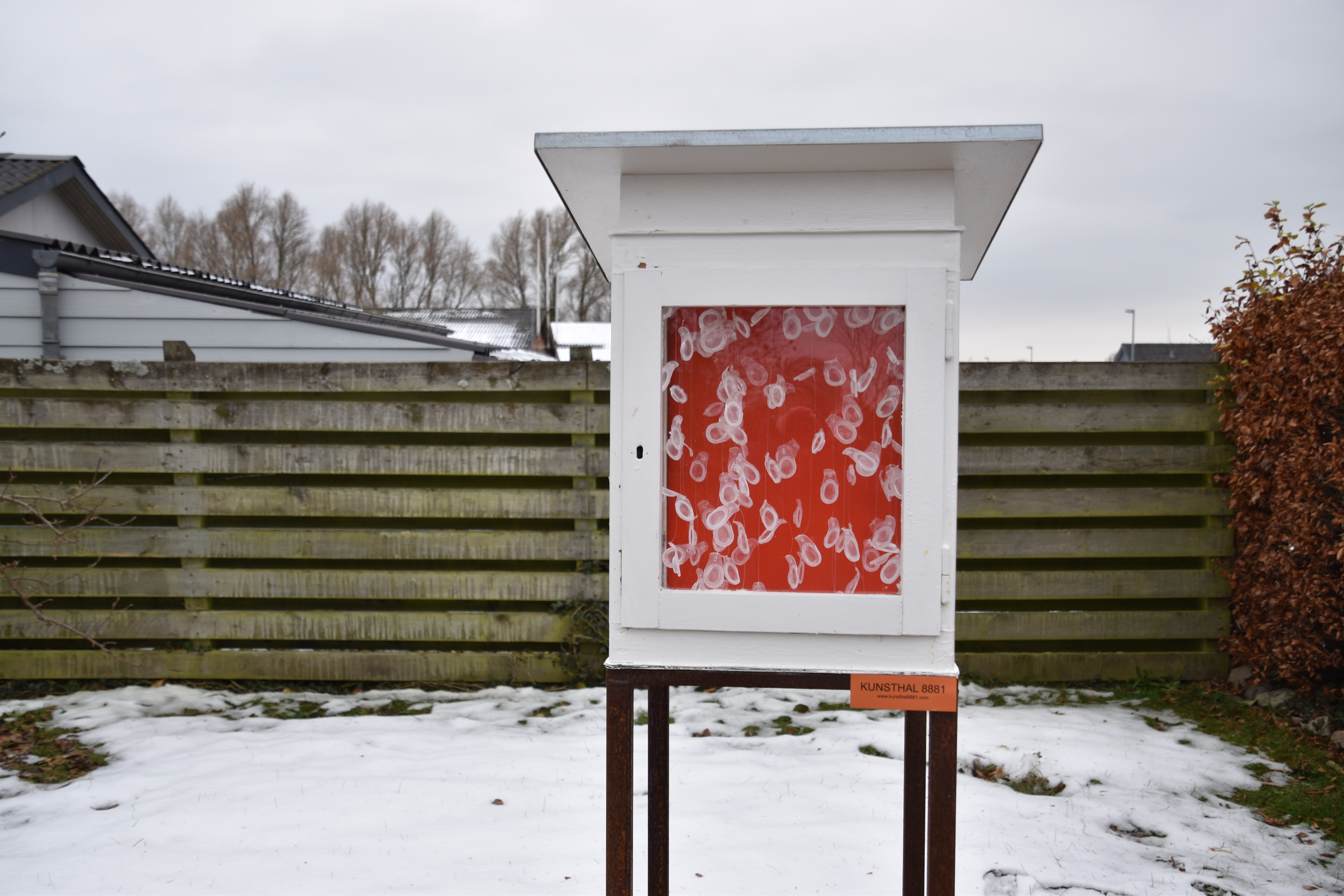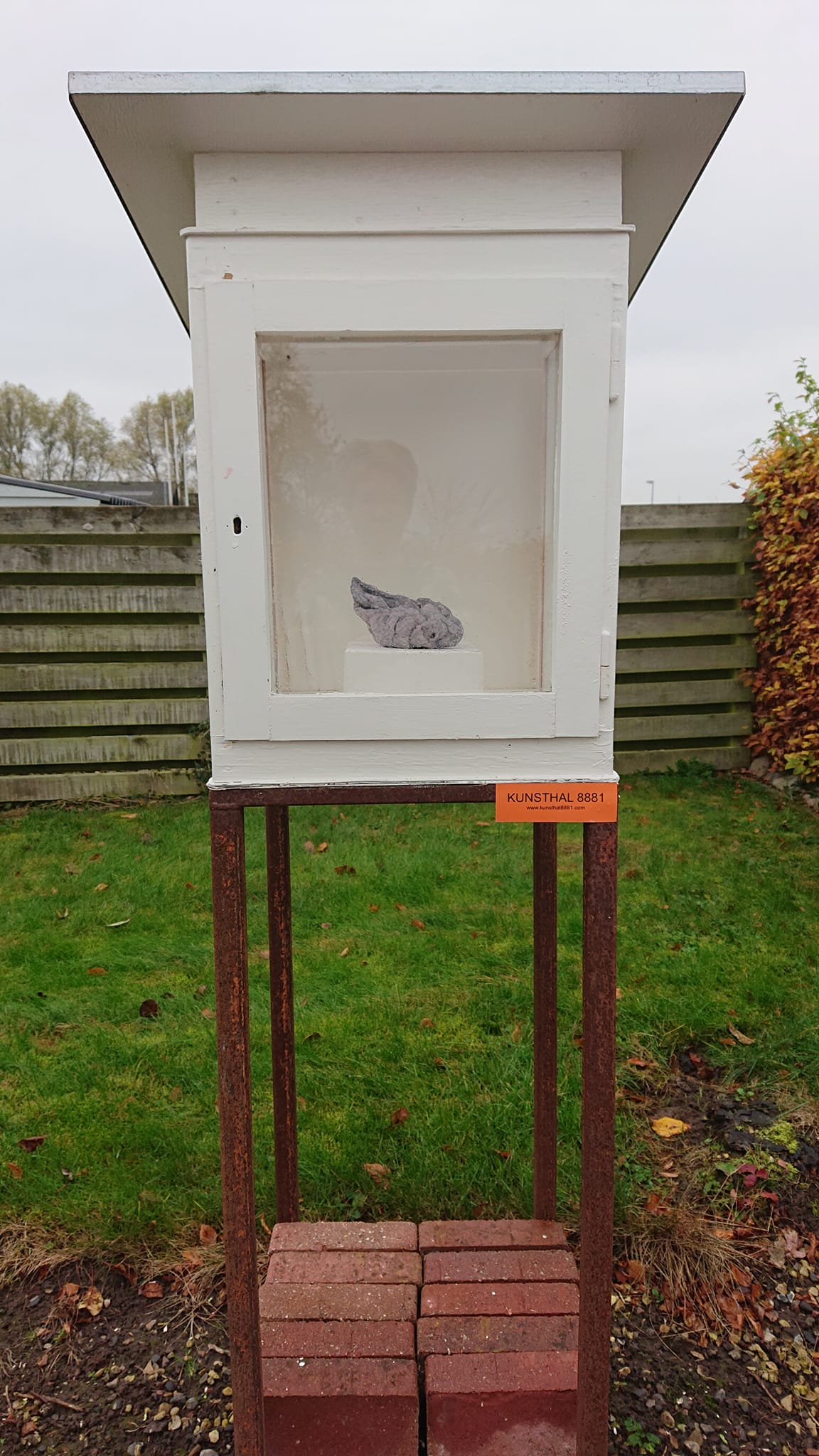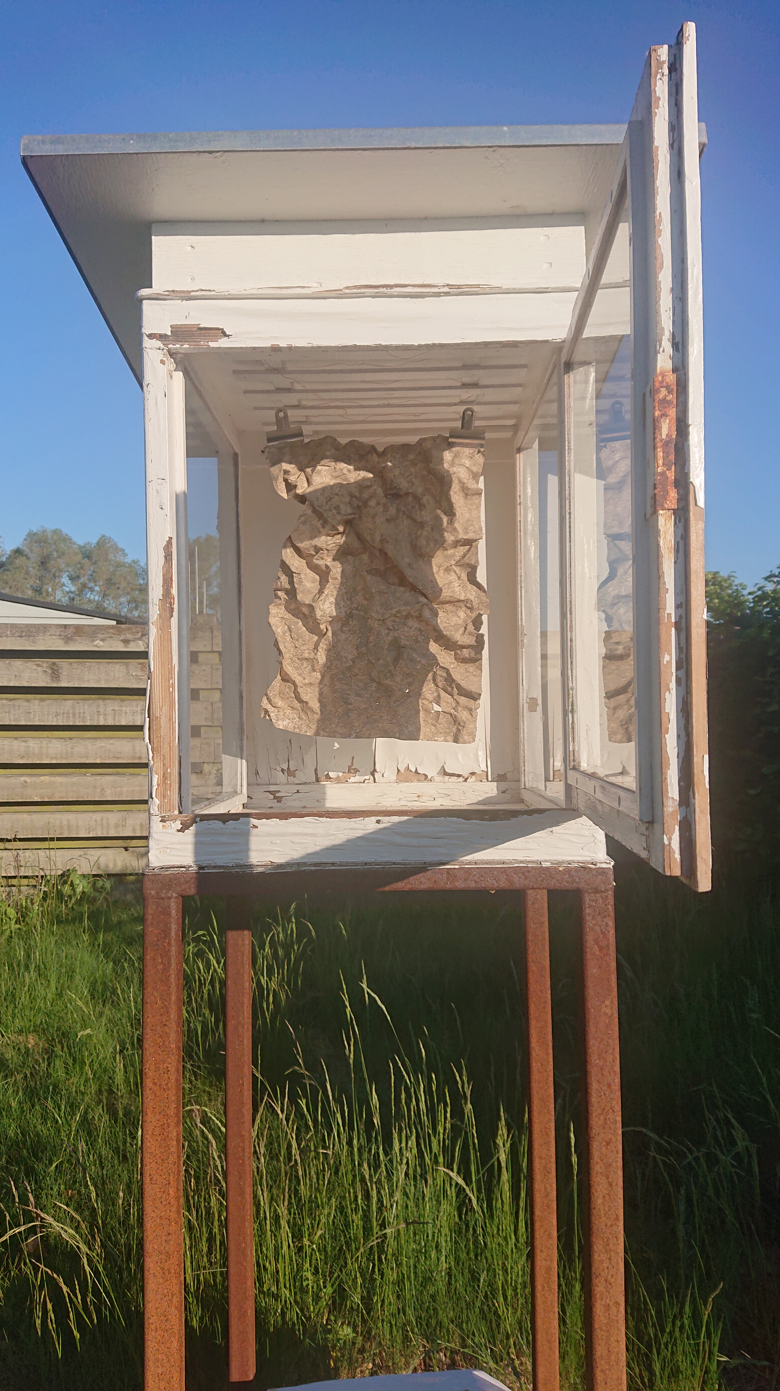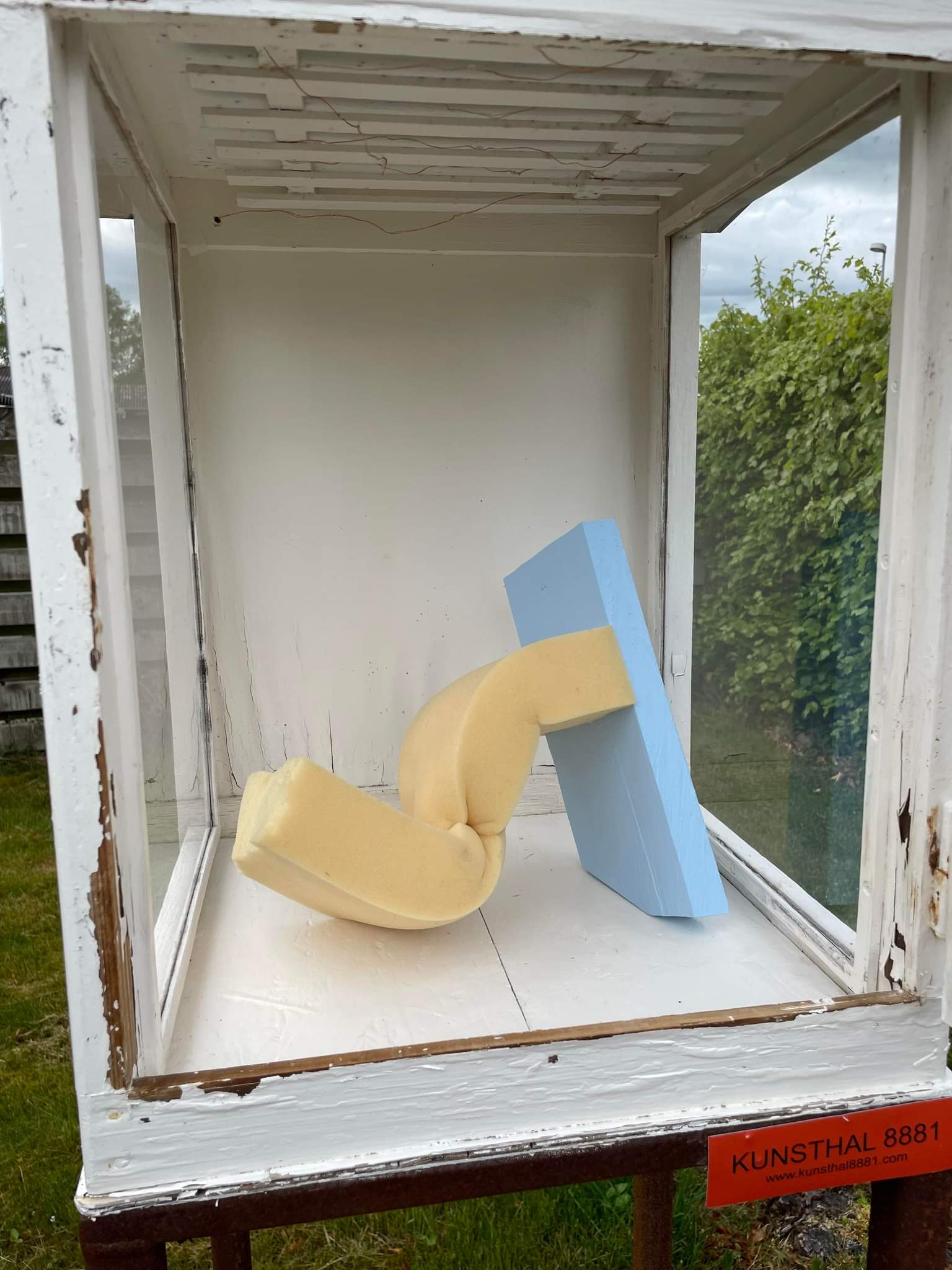 Gips, ostelærred, nytårsraketdutter, værkstedsaffald, akrylmaling.