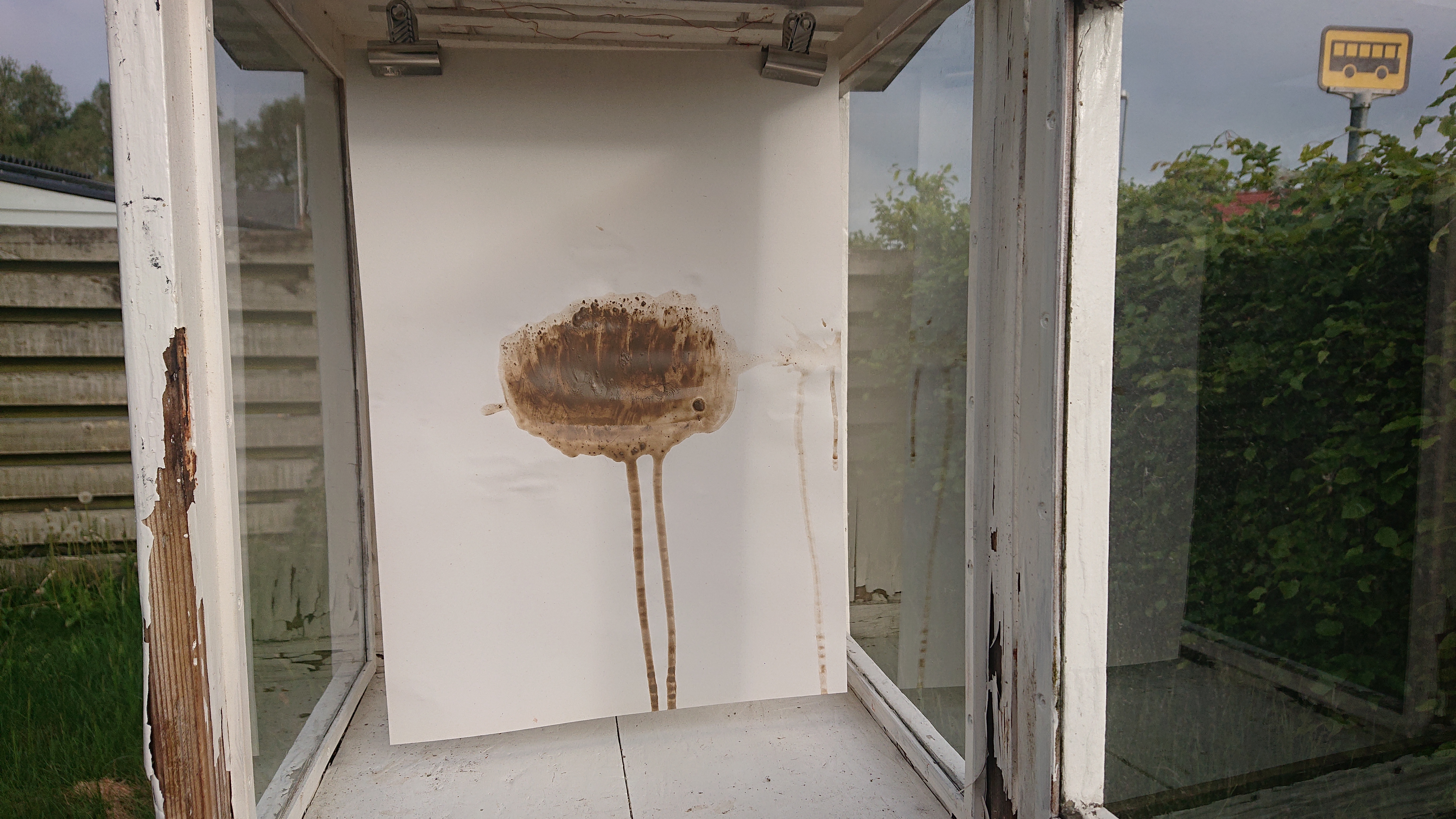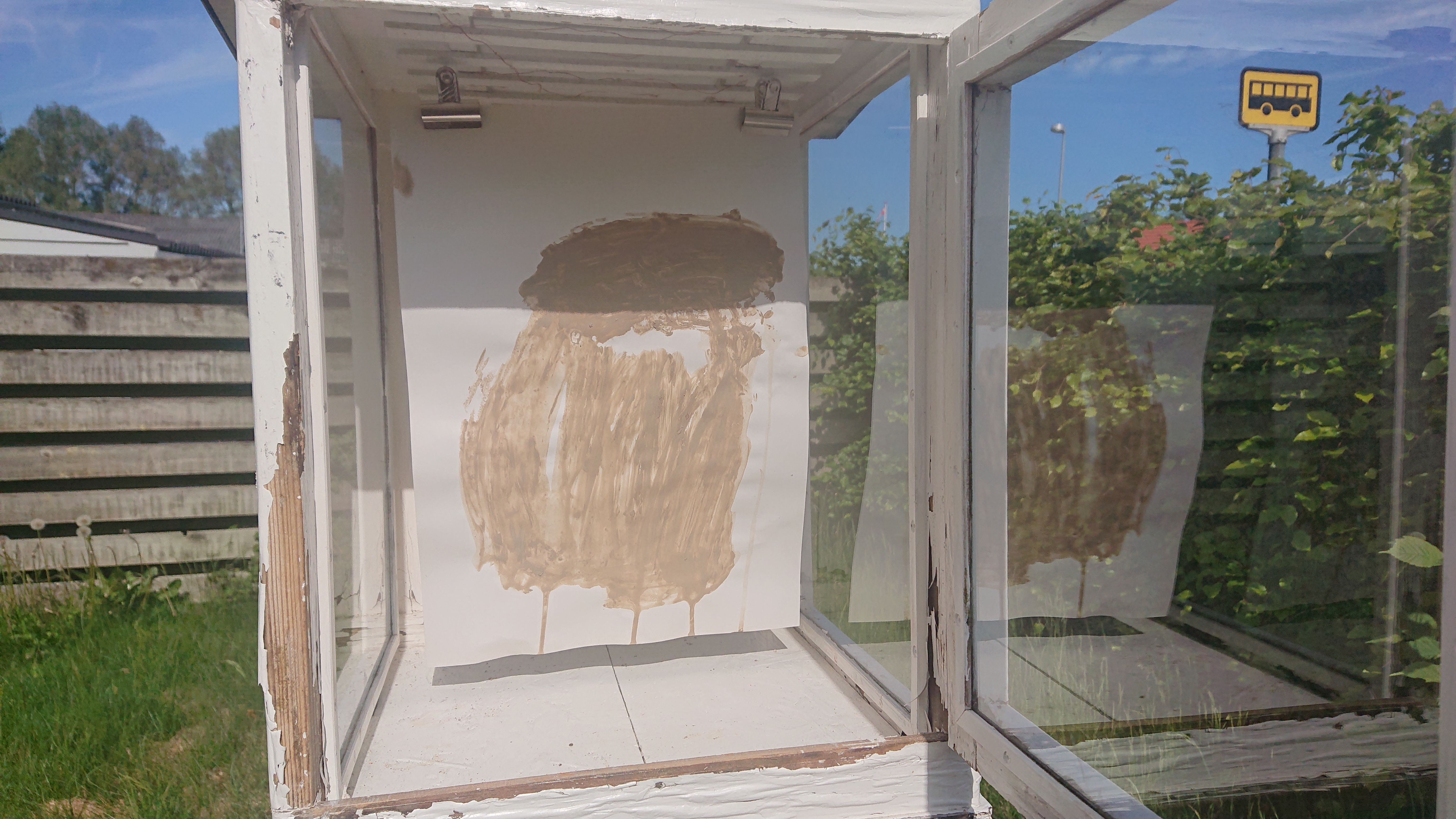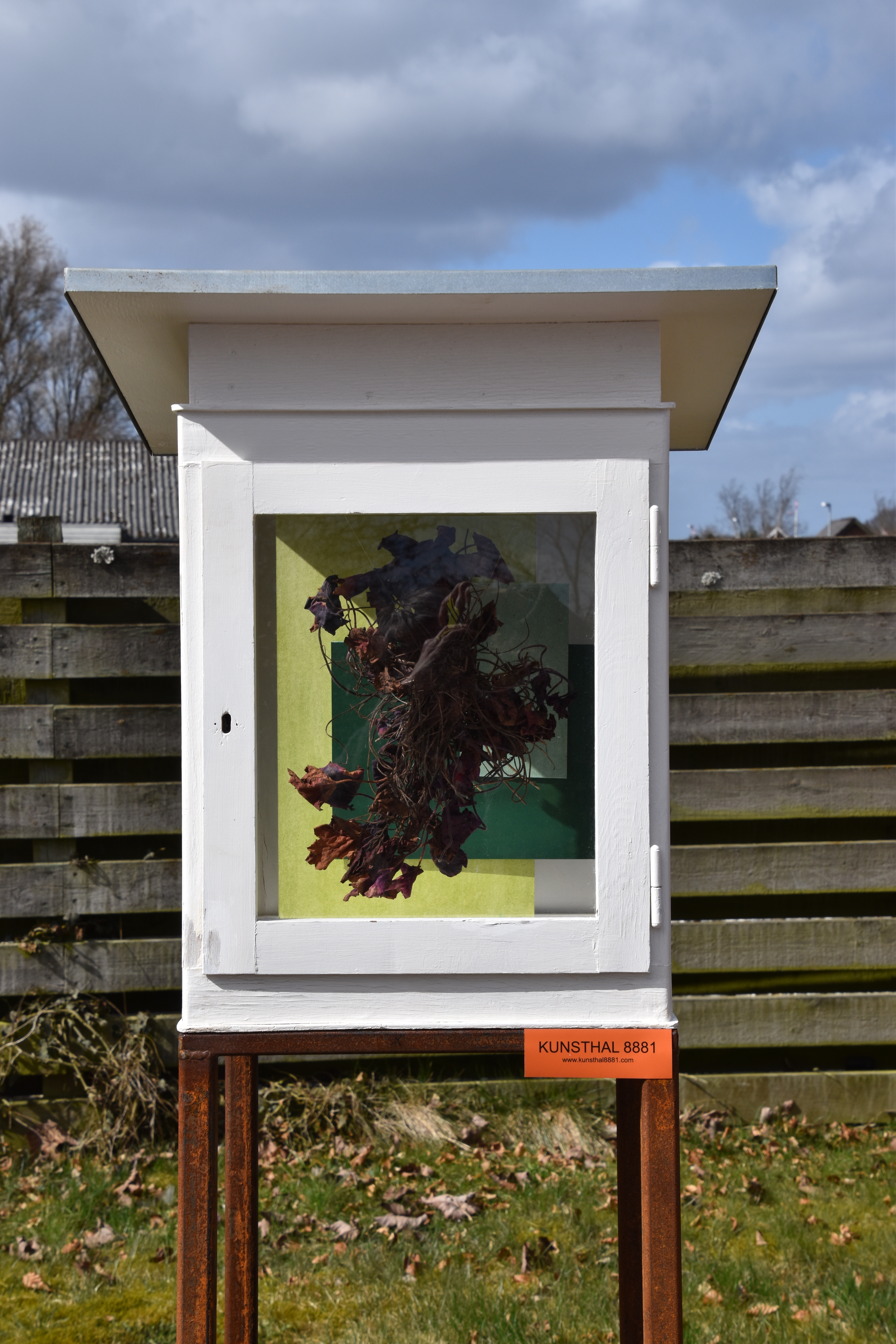 “Komplementært”, haveaffald, pap, oliepastel.