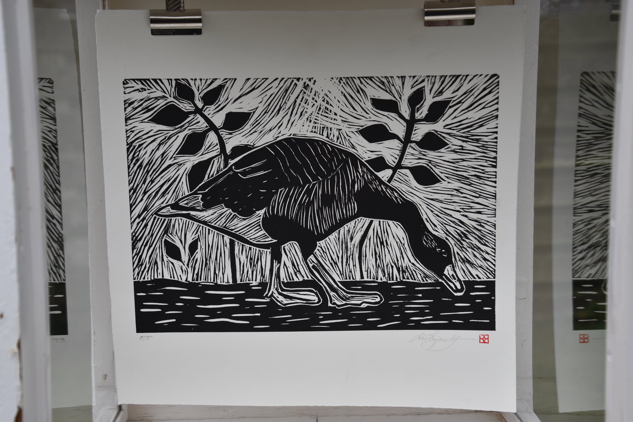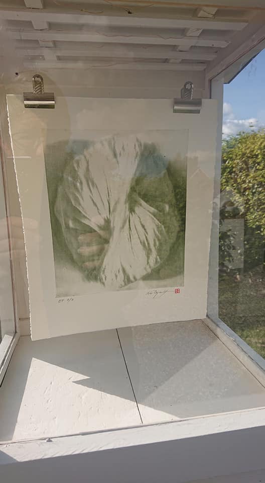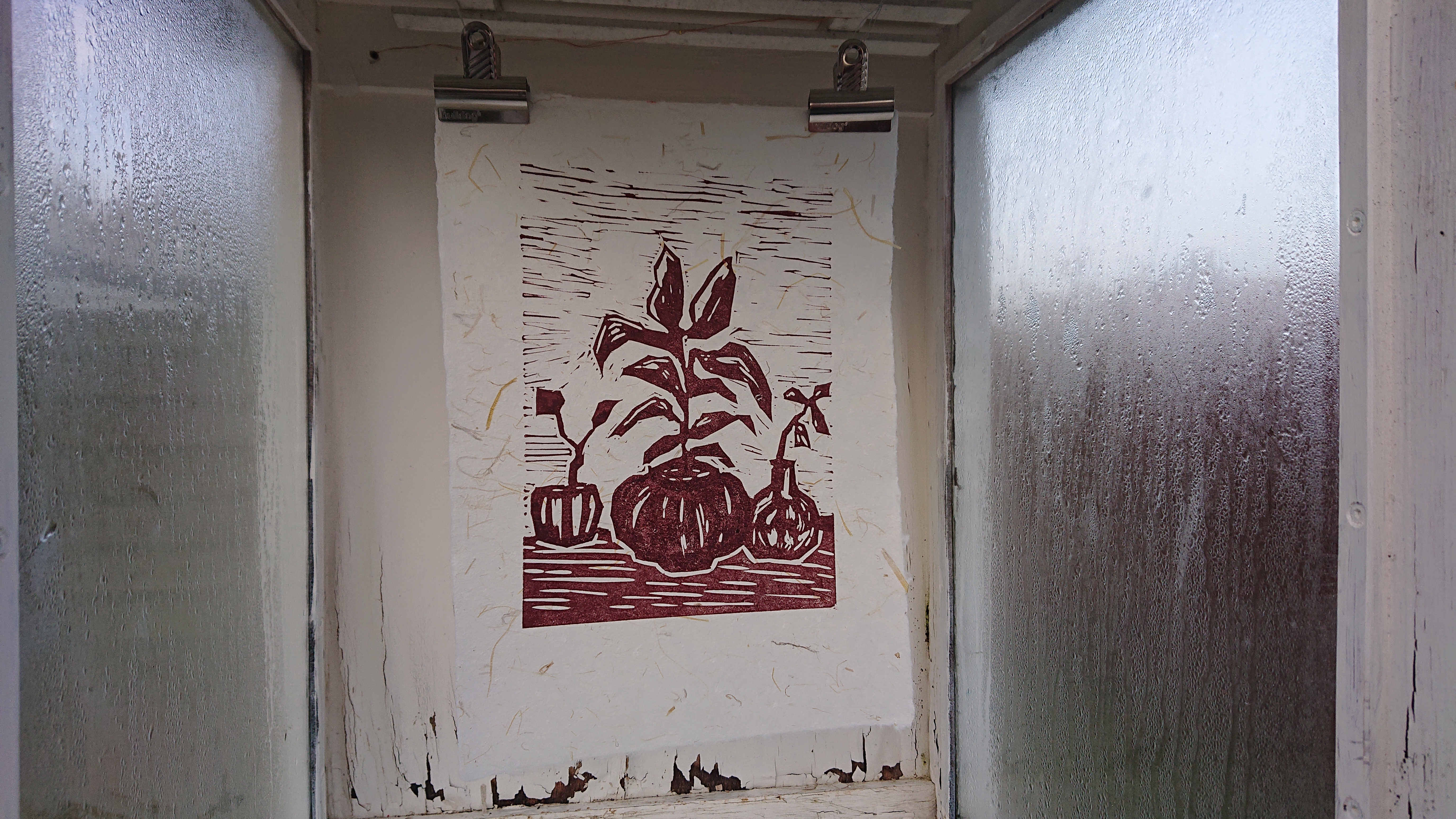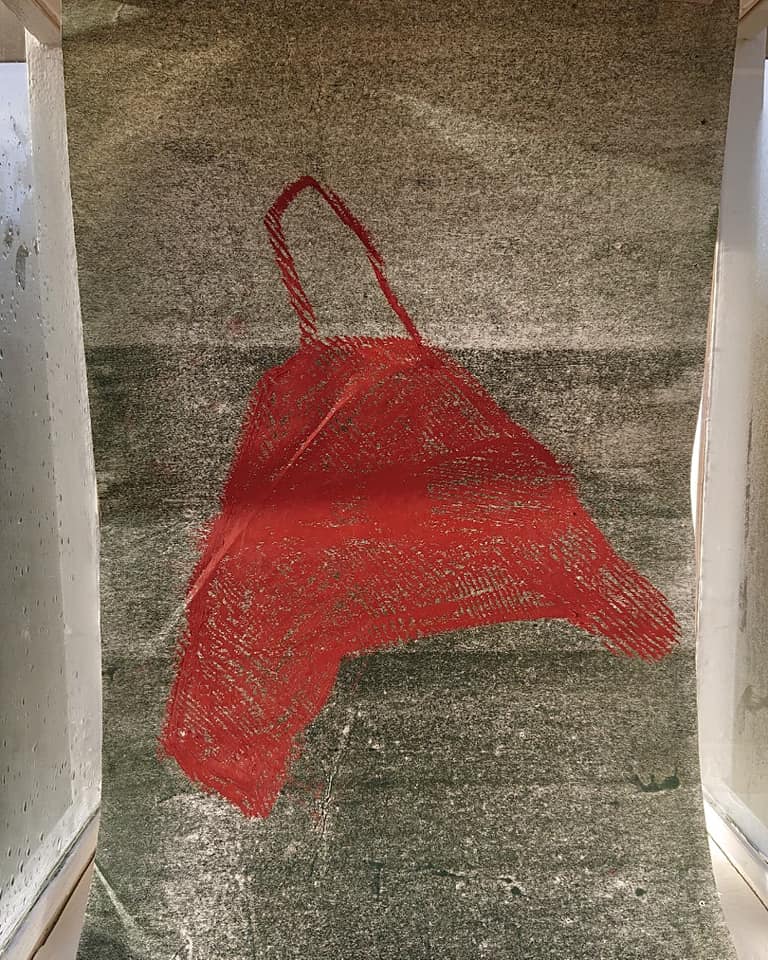 Linocut, håndgjort papir.