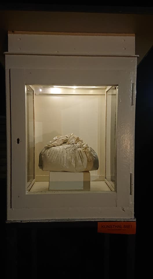 Objekt. Et stykke grafik fra en tid, der var engang – sort plastik – sort gaffertape.