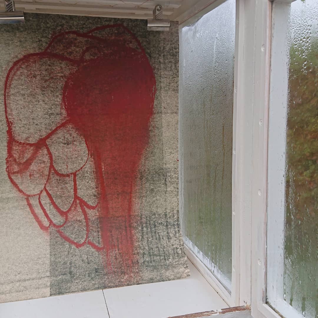 Foto behandlet i photoshop, motiv belyst over på offsetplader og trykt (plantryk).
