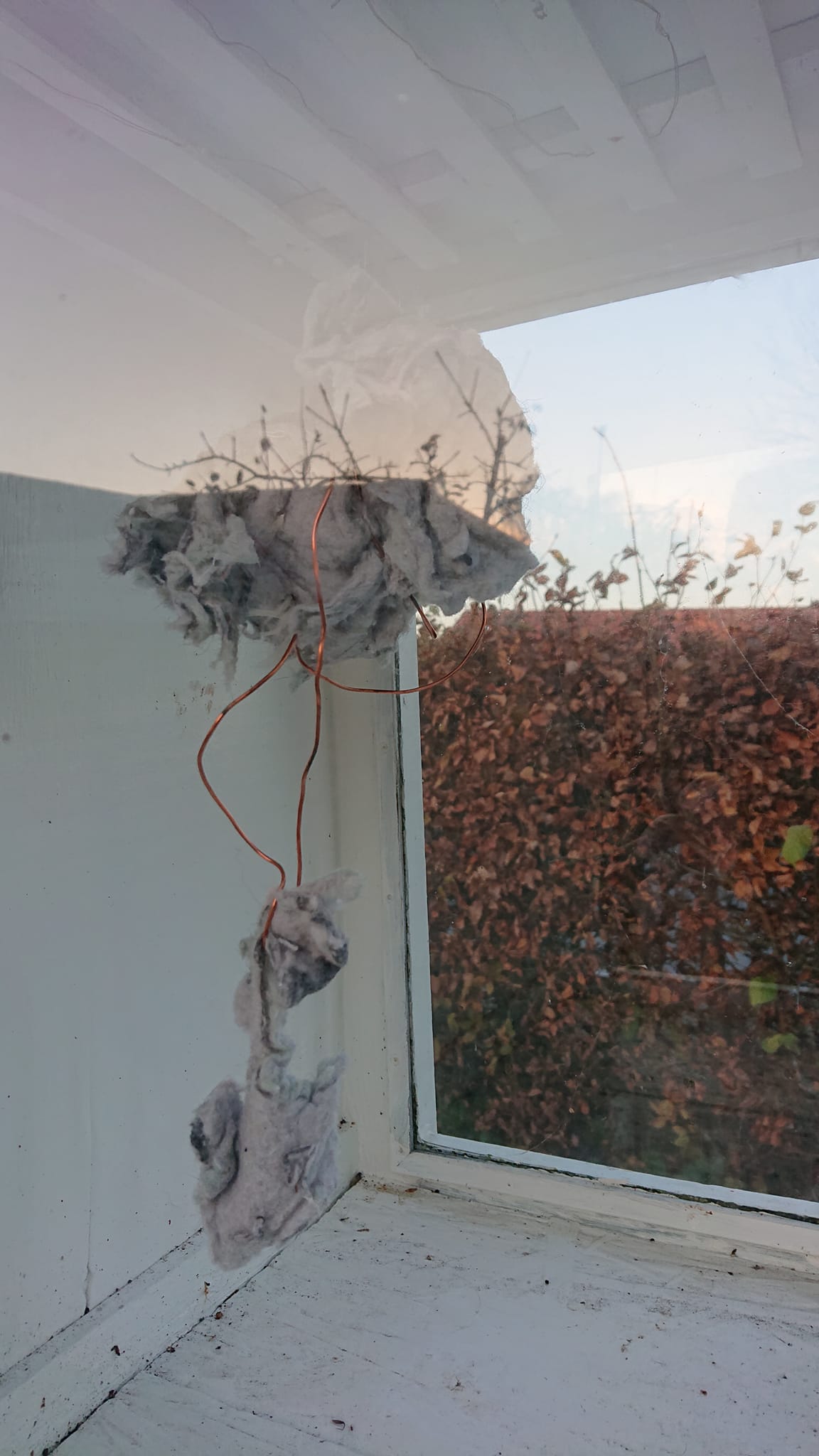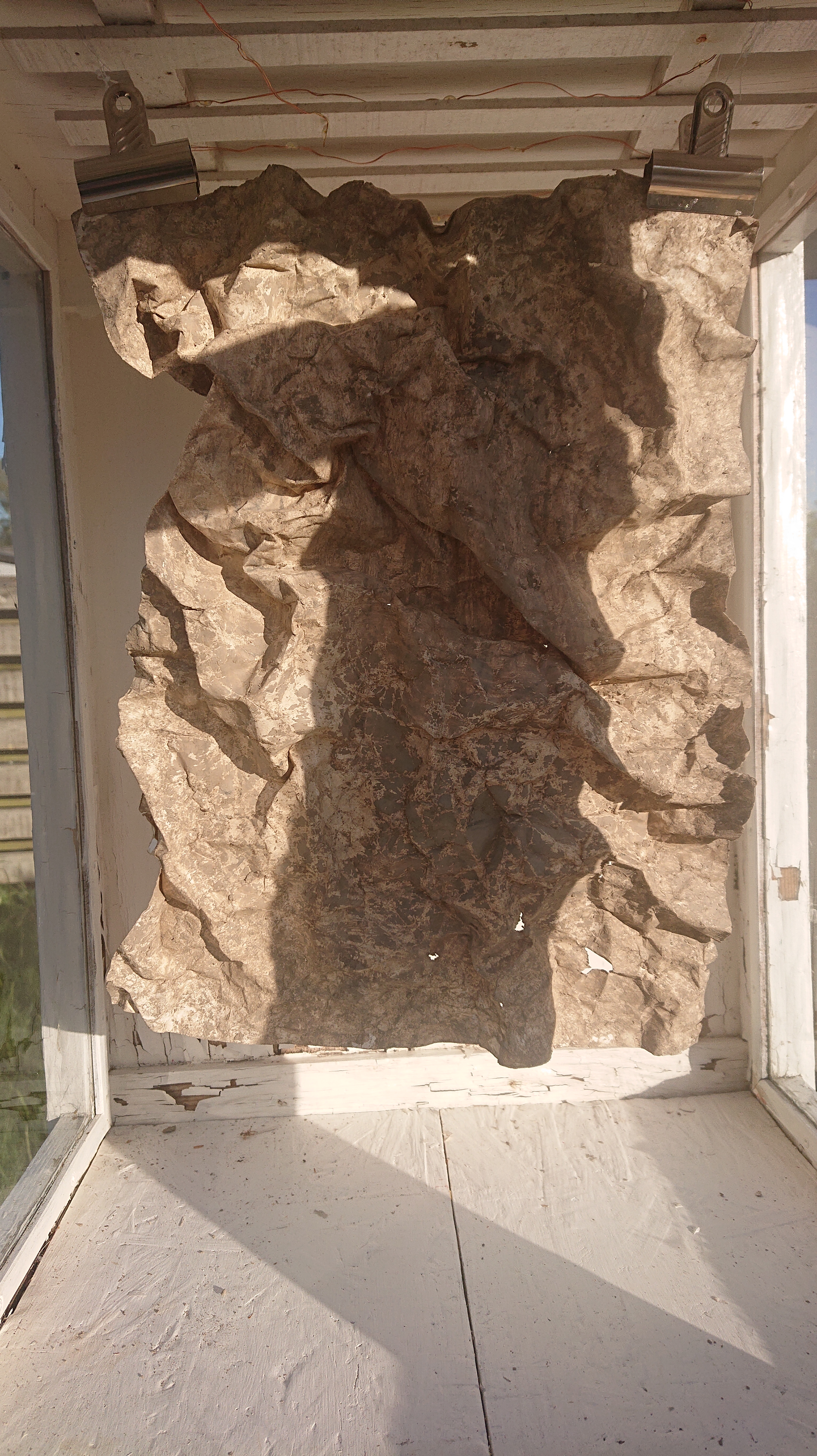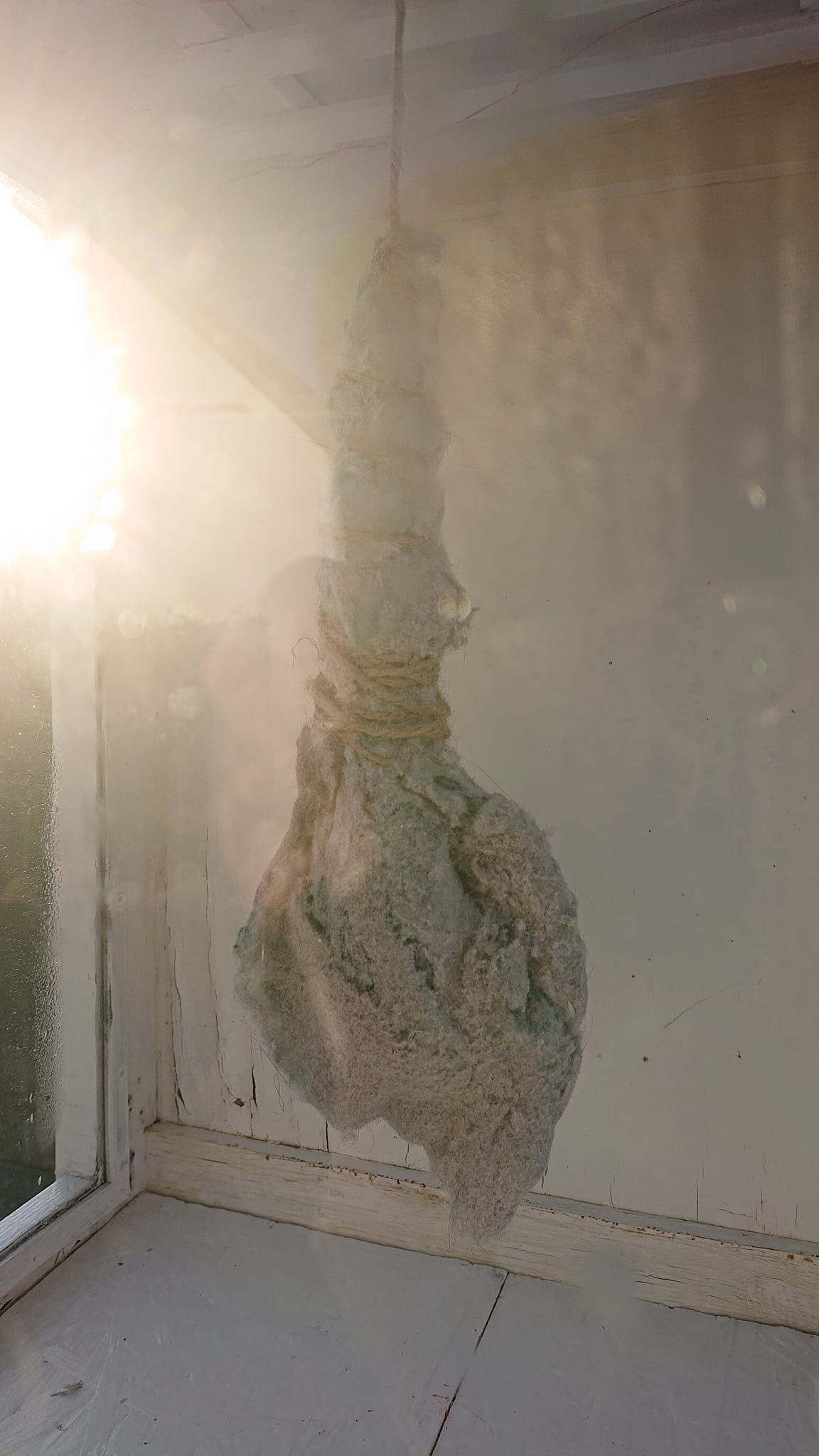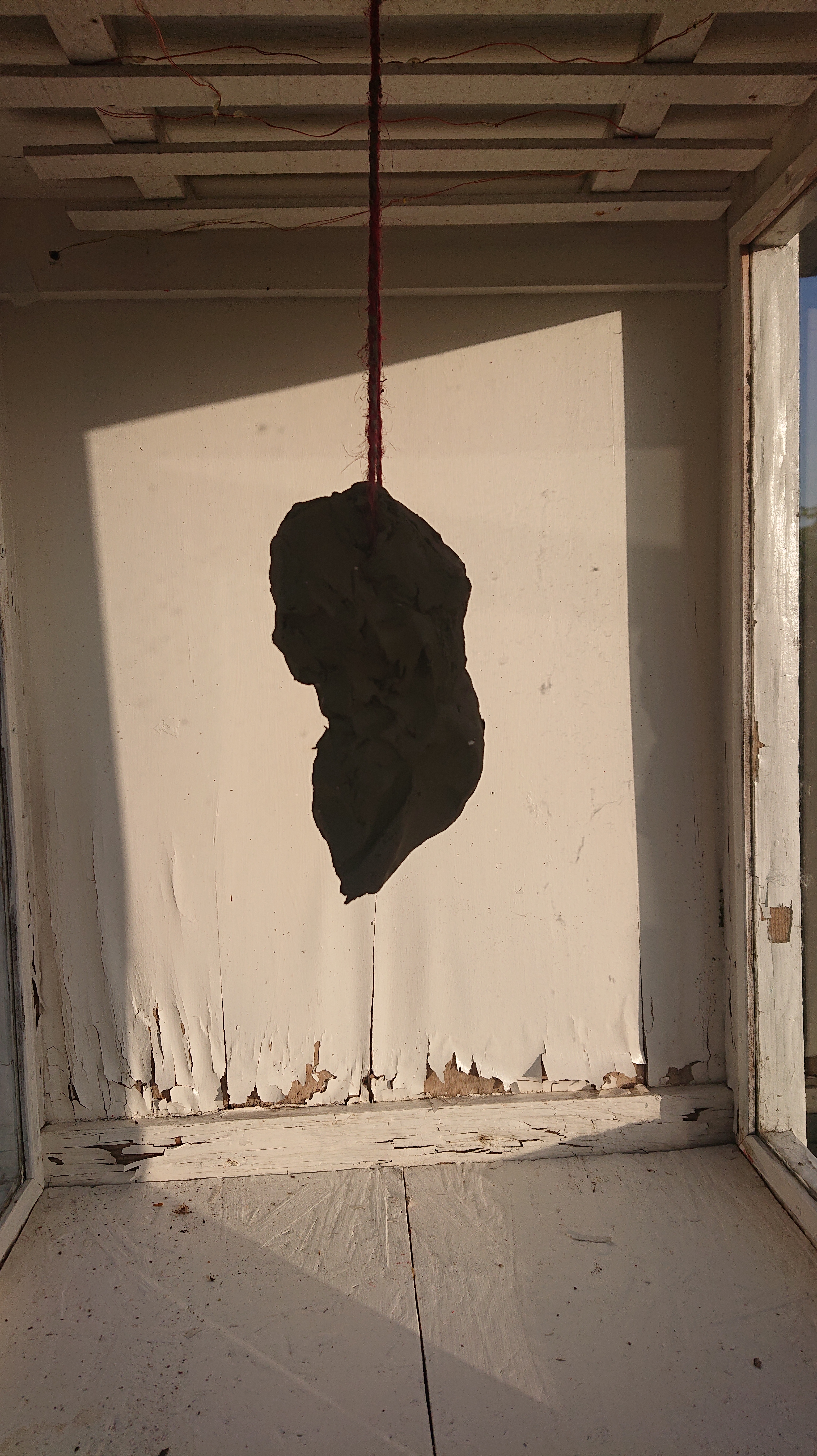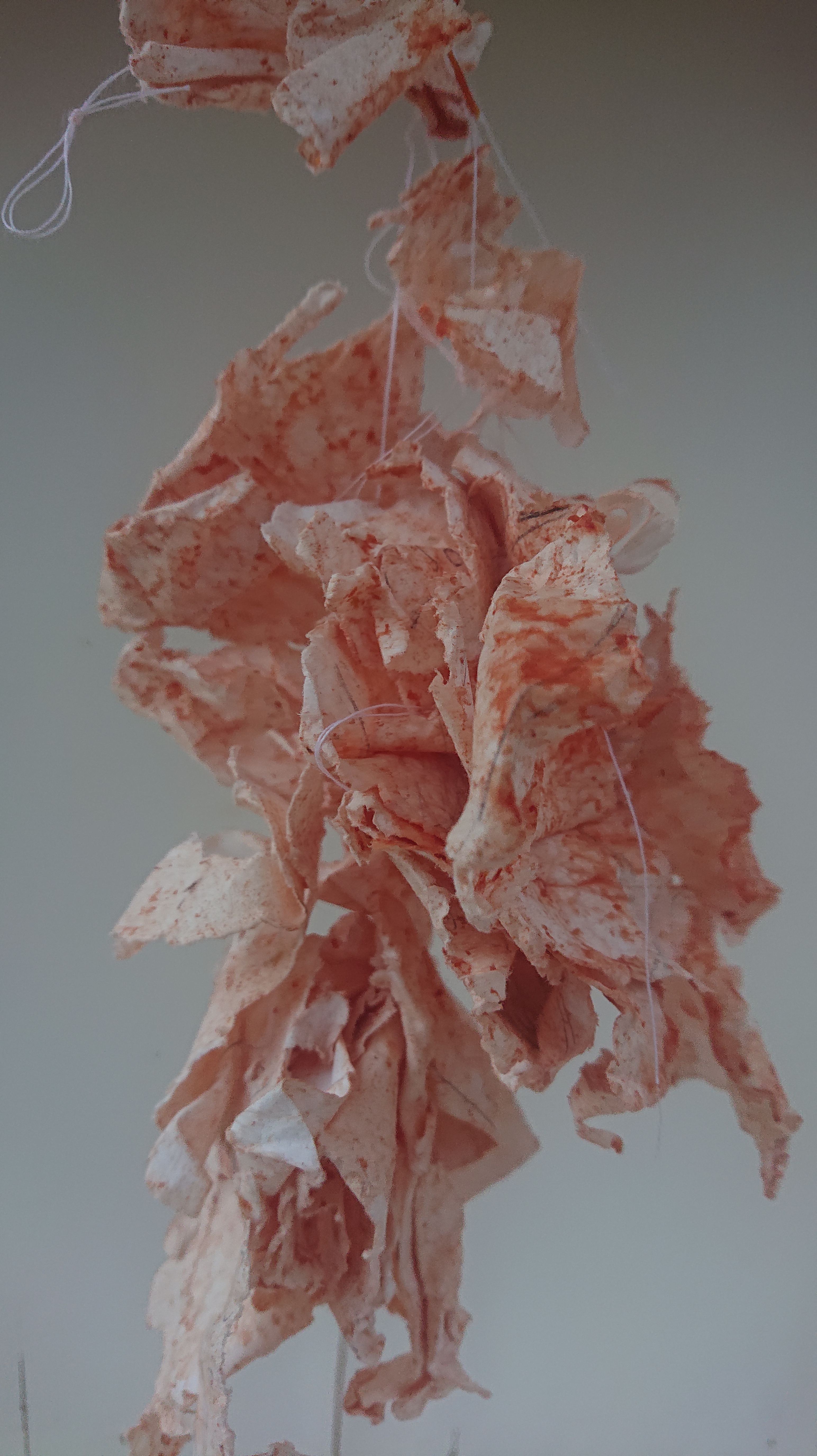 “Ventetid”. Objekt. Papir, sytråd, snor.