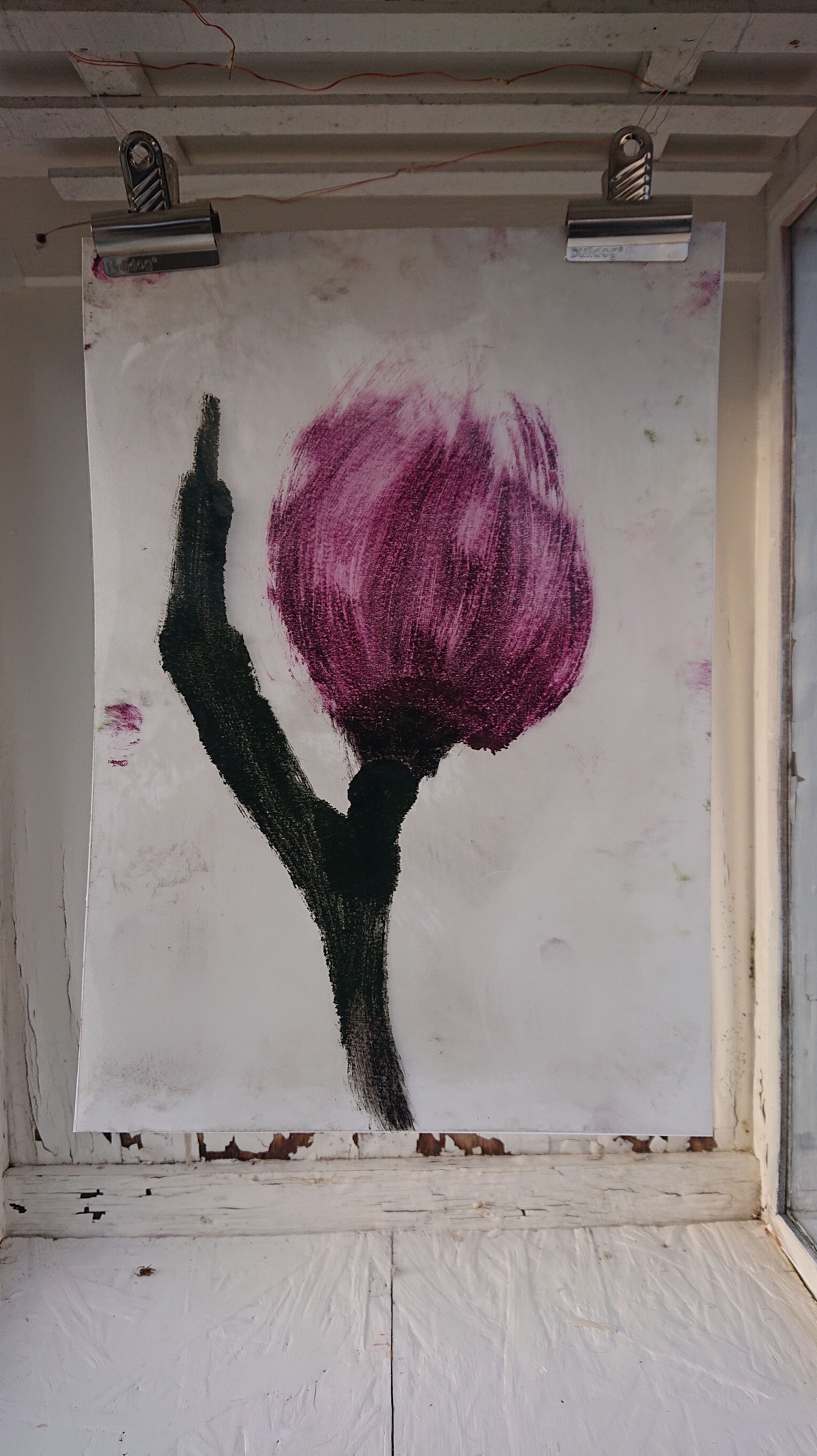 Oliemaling på papir.