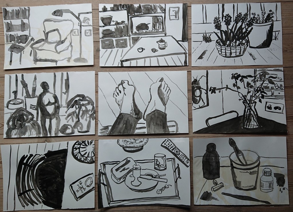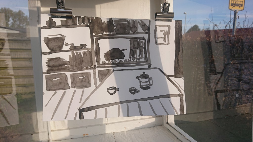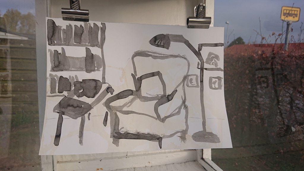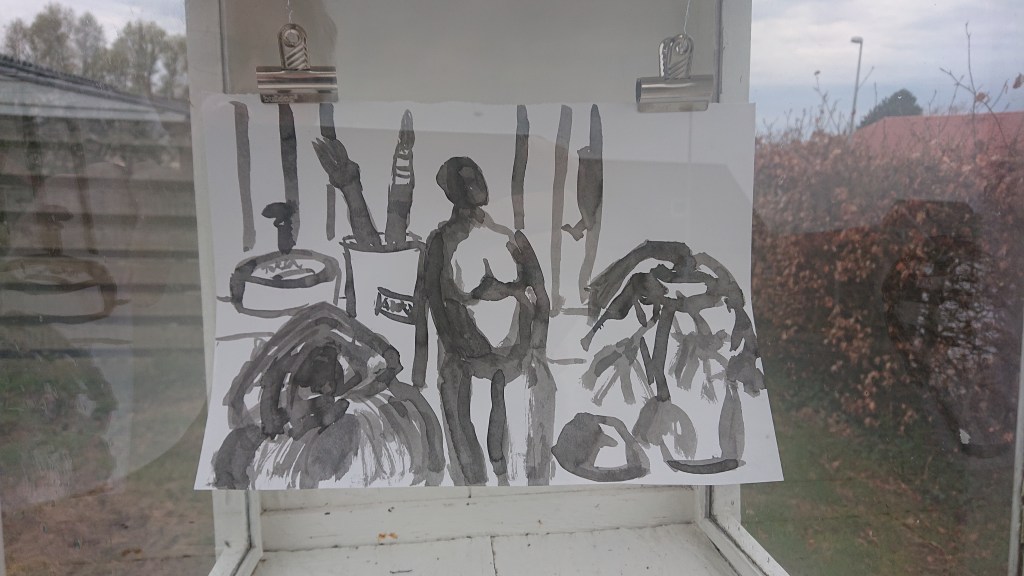 Tegning. Flydende tusch.